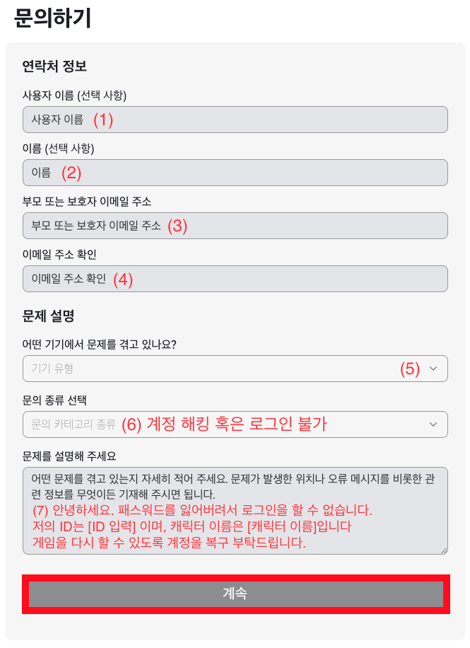 - 고객센터 문의 (Account Hacked 선택)