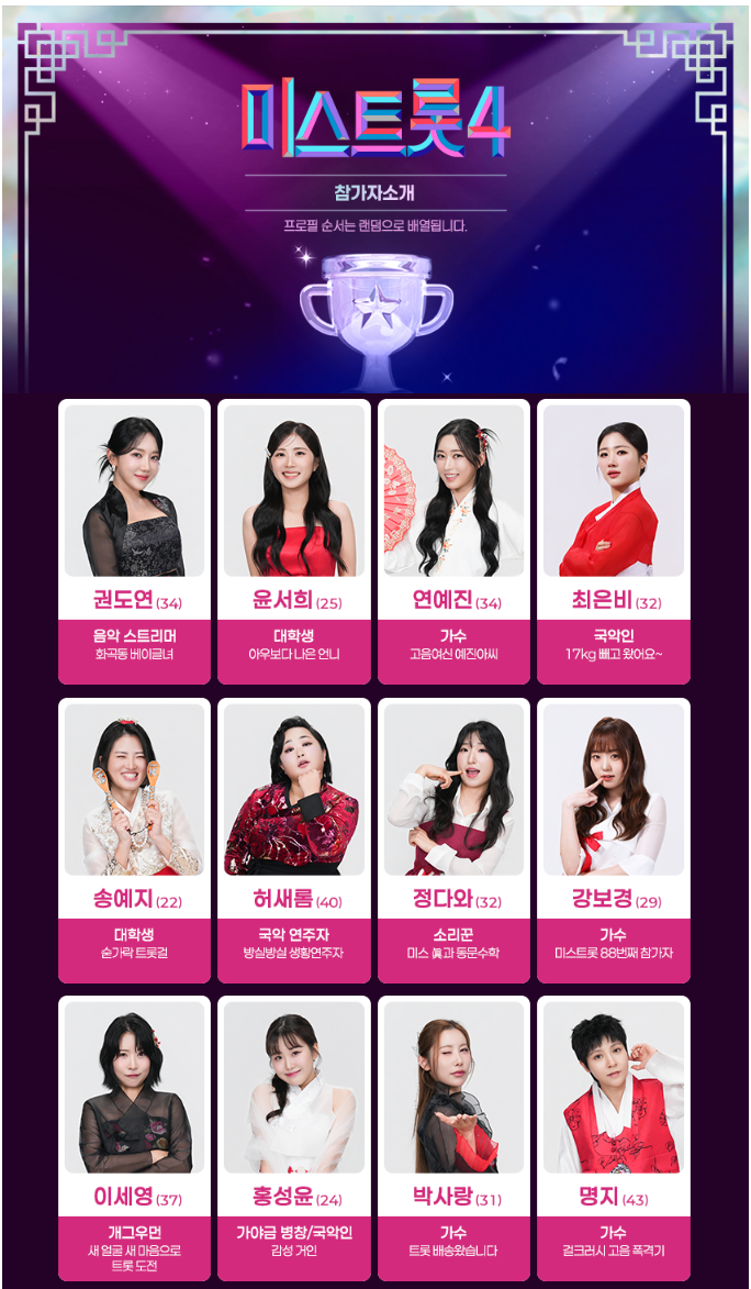 미스트롯4 참가자 명단 & 프로필 정리