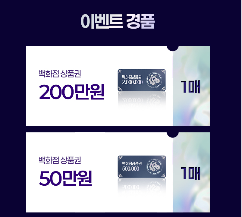 - 백화점 상품권, 치킨·카페 기프티콘 증정