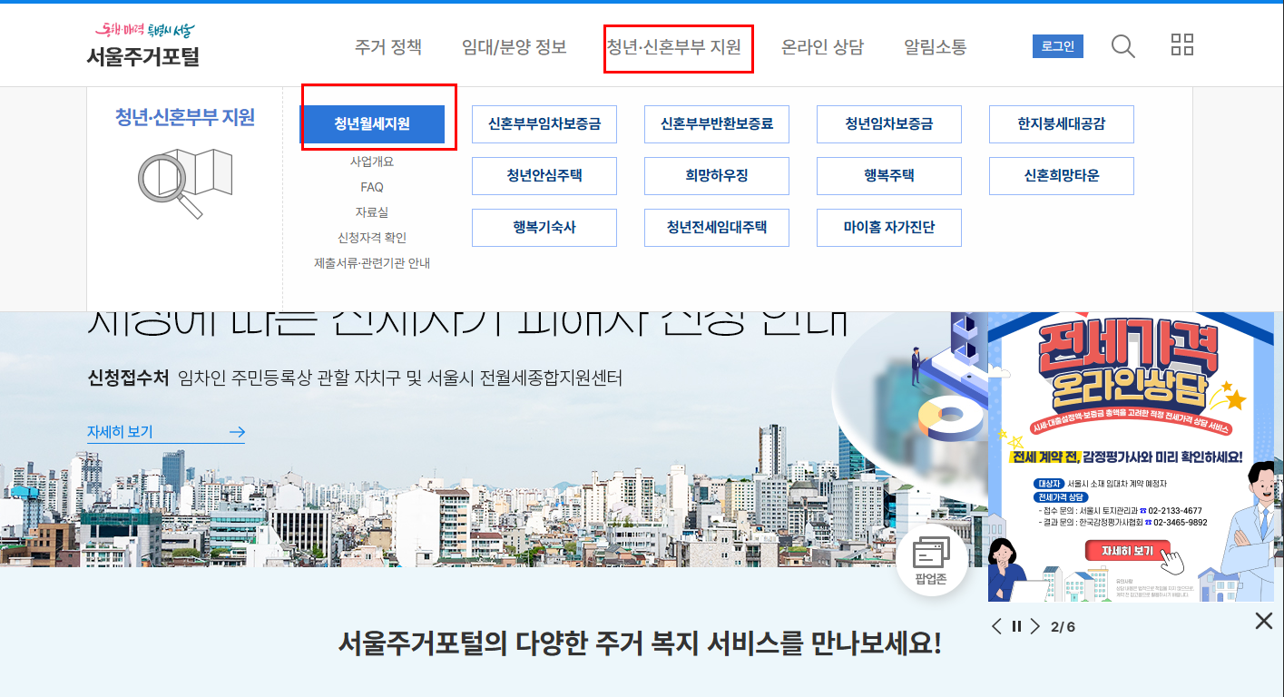 - 서울주택도시개발공사 청년월세지원센터 문의: 1833-2030