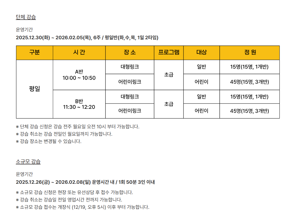 - 개인 스케이트 반입 : 가능 (단 , 칼날 점검 필수)