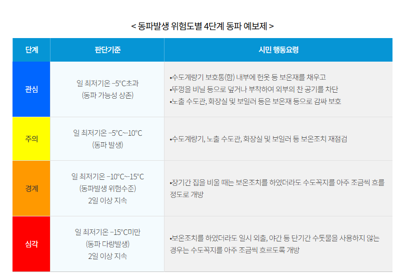 3️⃣ 한파 예보 시 ‘물 똑똑’ 틀어두기