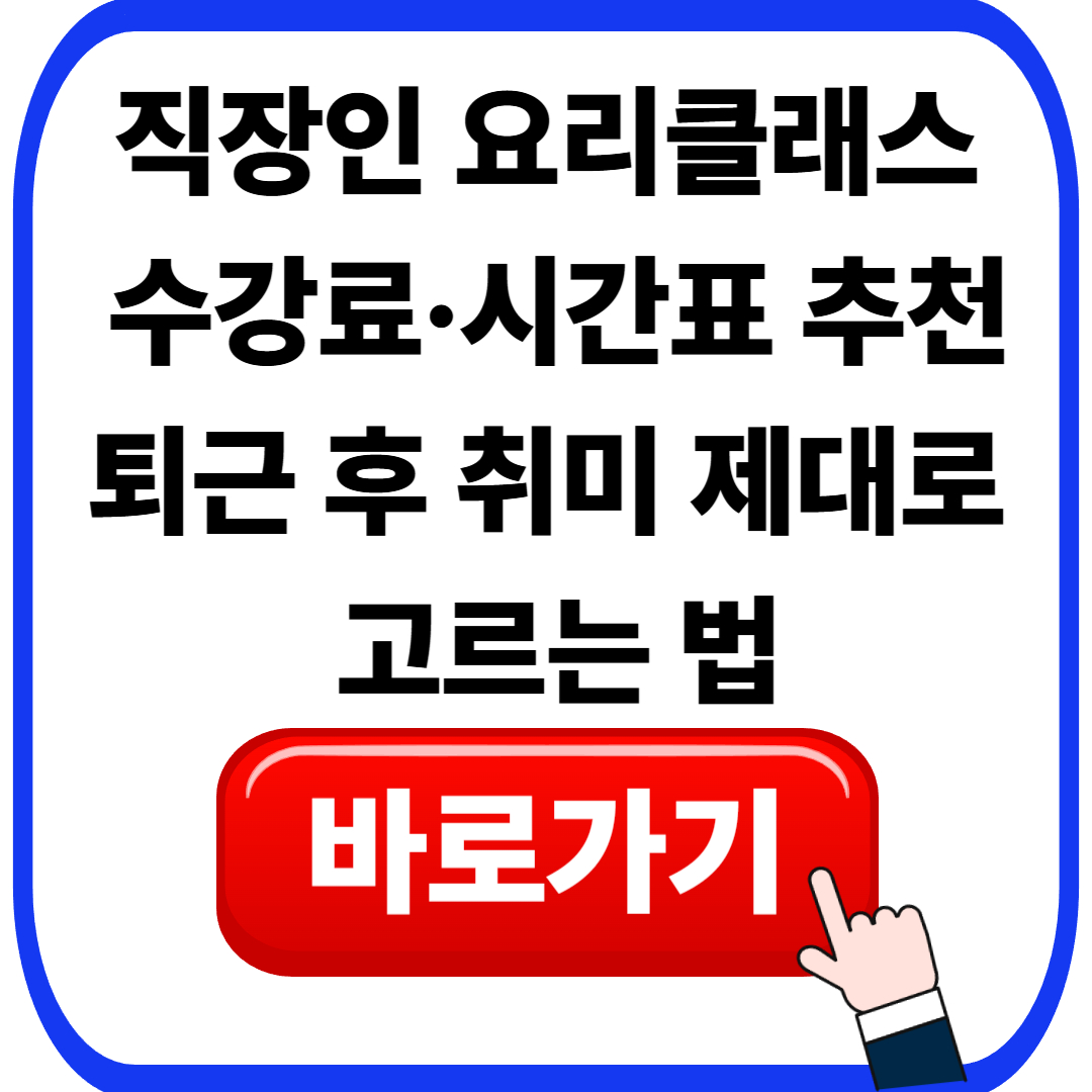 직장인 요리클래스 수강료·시간표 추천|퇴근 후 취미 제대로 고르는 법