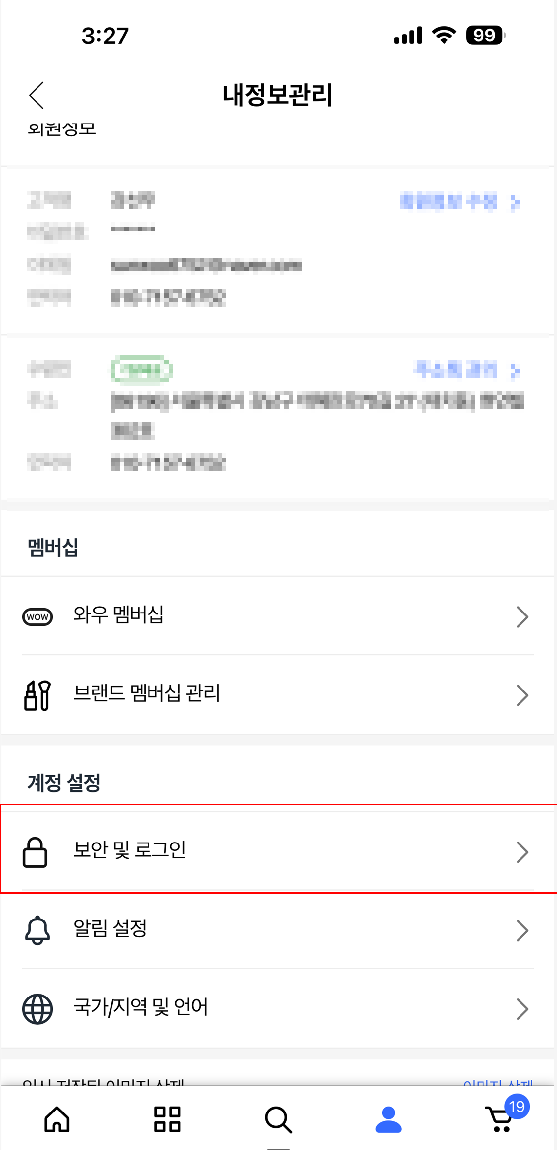- 내정보 관리 → 보안 및 로그인 선택