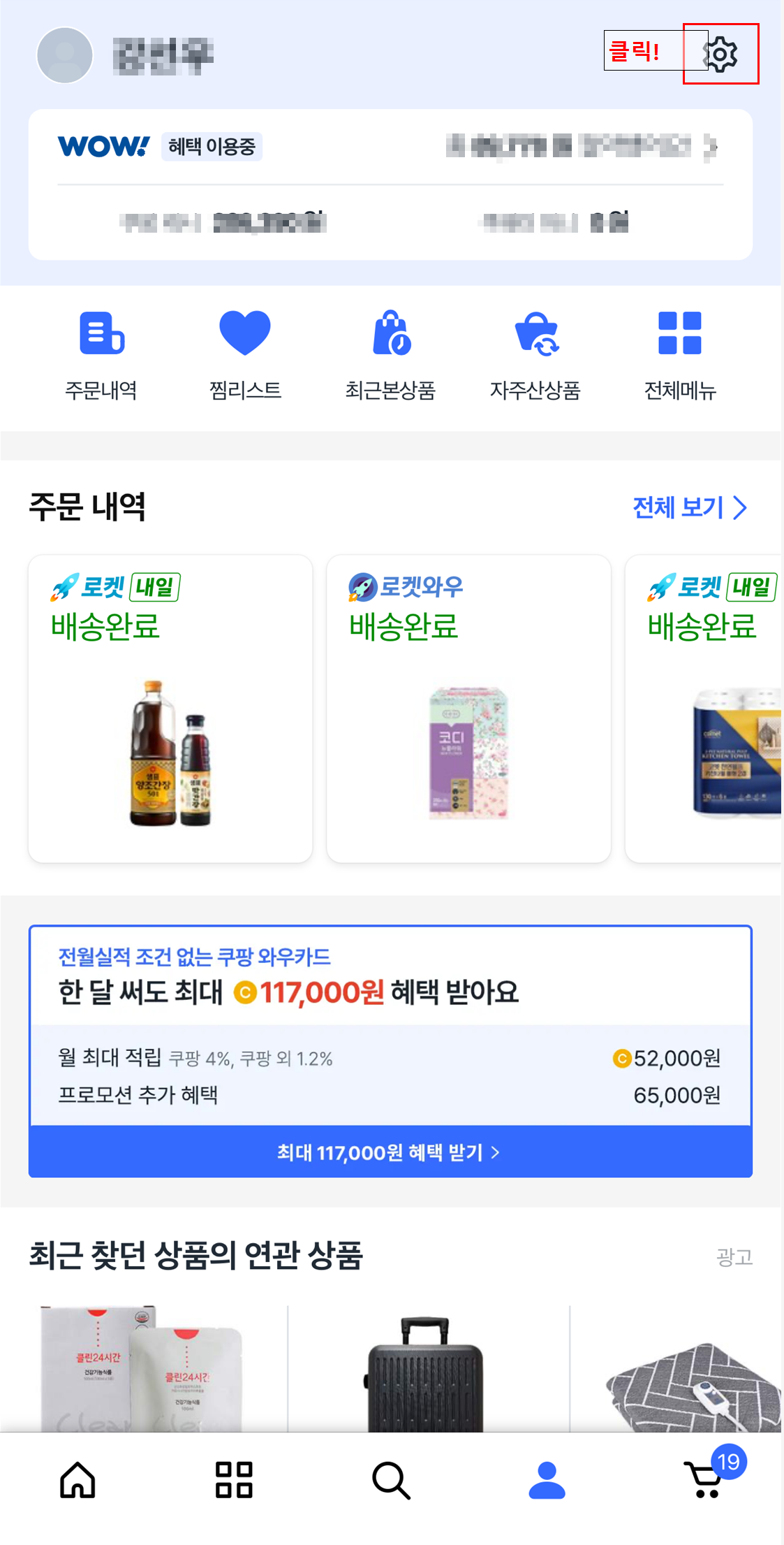 - 하단 마이쿠팡 클릭