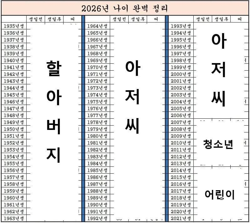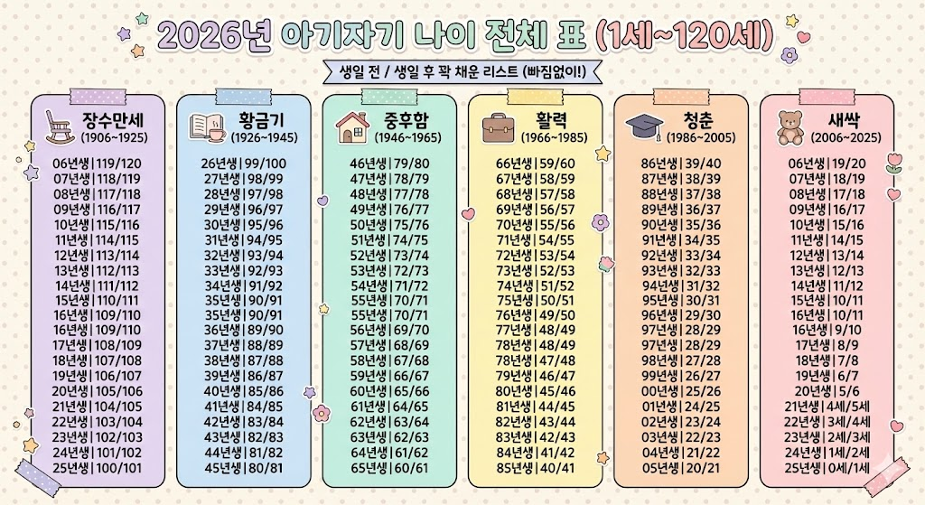 2026년 출생연도별 나이 한눈 정리