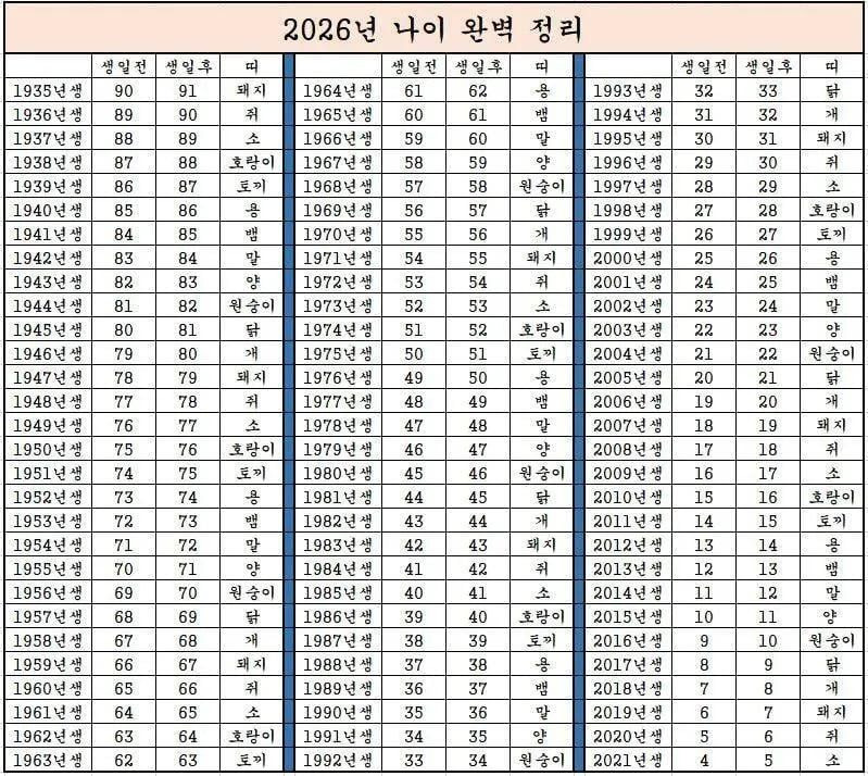 ✔ 2026년 기준 나이 정리