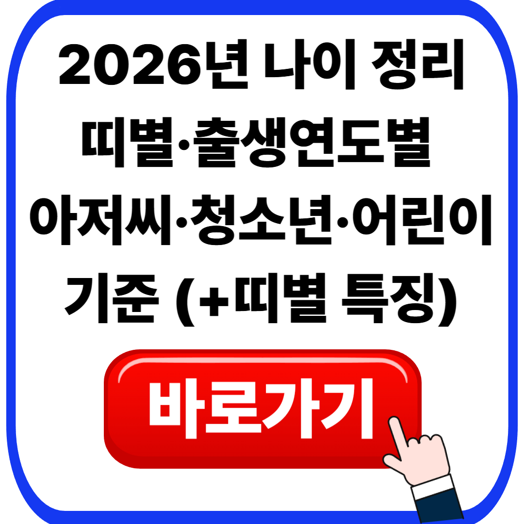 2026년 나이 정리|띠별·출생연도별 아저씨·청소년·어린이 기준 (+띠별 특징)