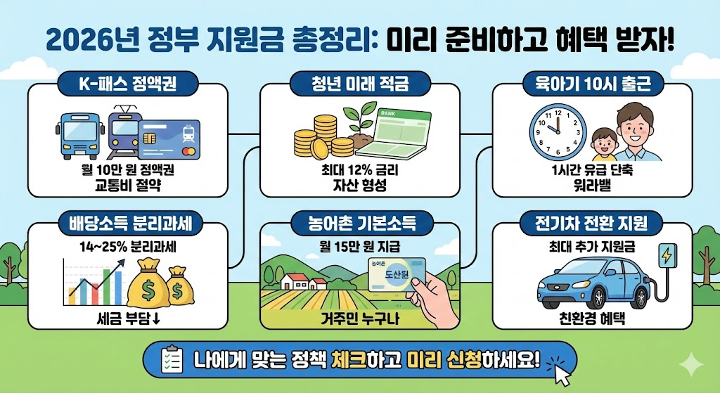 오늘은 2026년에 시행되는 핵심 정부 지원금 정책을 꼭 필요한 내용만 정리해드립니다.
