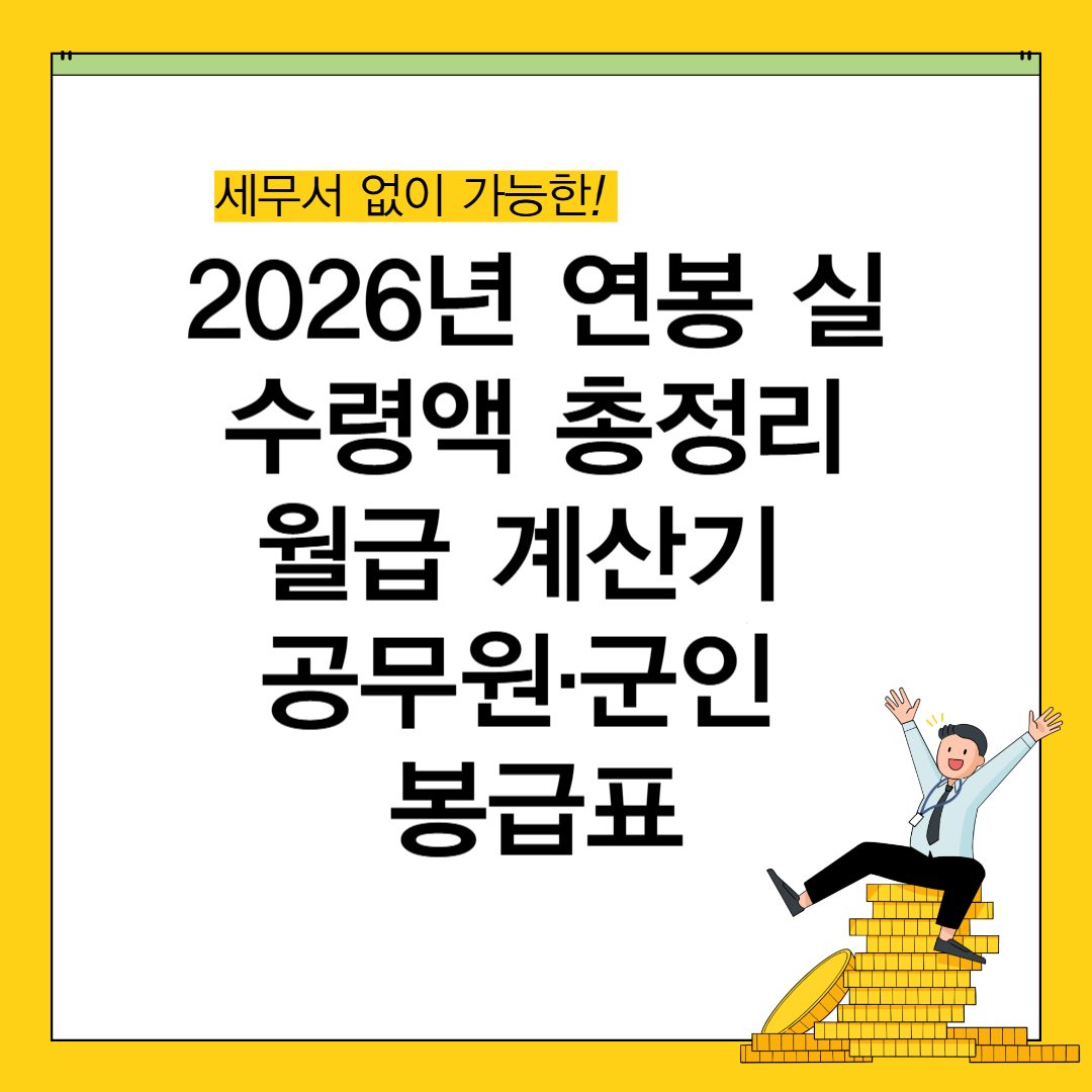 바로 2026년 연봉 실수령액, 월급 실수령 계산기, 공무원 봉급표, 군인 월급입니다.