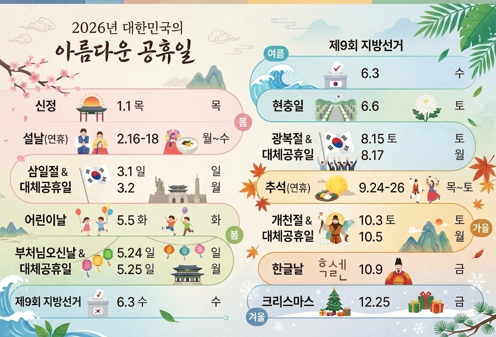 2026년은 공휴일이 주말과 겹치는 날이 일부 있지만, 연차를 어떻게 쓰느냐에 따라 체감 휴무가 크게 달라지는 해입니다.